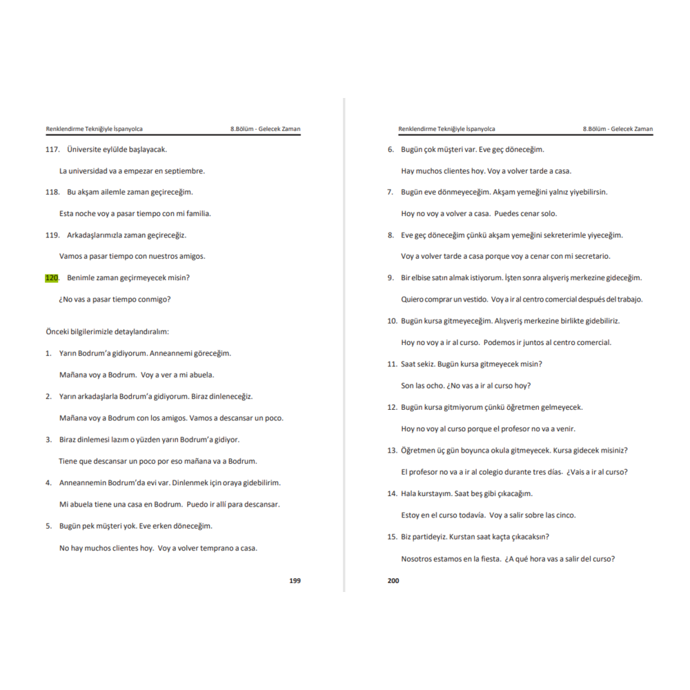 Konunun pekişmesi amacıyla her konunun sonunda bolca örnek cümle verilerek  günlük konuşmada kişinin kendisini ifade edebilmesine yönelik çalışmalar içermektedir.  tanıtım videosu